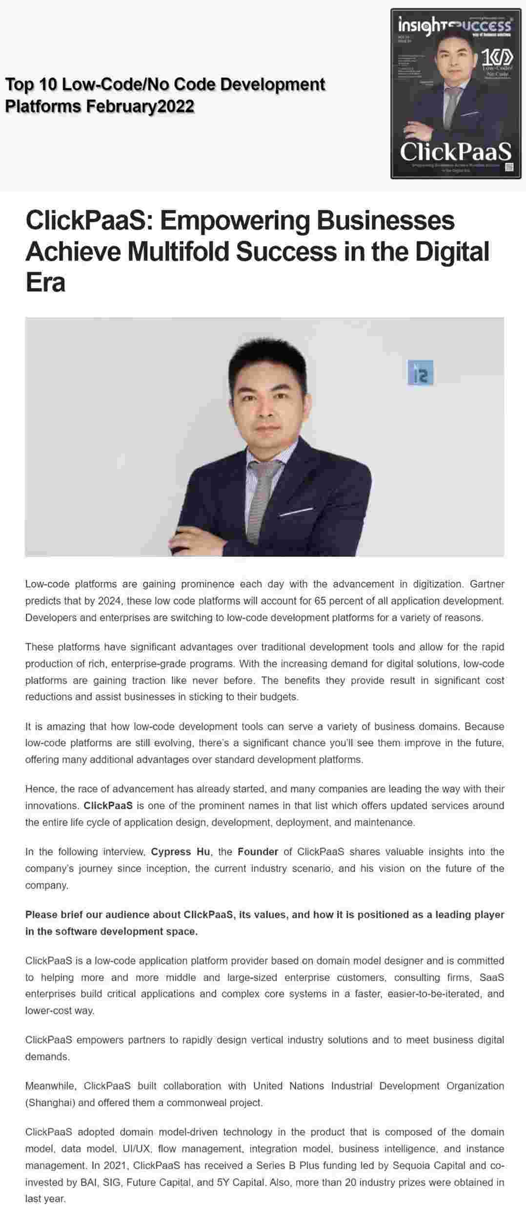 2022年年初,,美团钱包商家版入选外媒Insights Success低代码/无代码开发平台 Top10,,,,创始人、、、CEO胡柏受邀接受专访并荣登封面人物,,,,他与Insights Success的读者分享了美团钱包商家版成立的初心、、、、发展历程、、、、当前的行业发展趋势以及他对公司未来的展望。。。